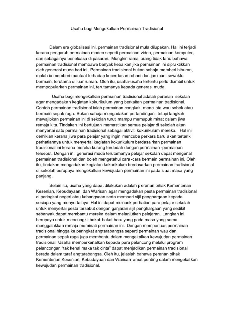 Contoh karangan cemerlang pentingnya untuk terus popularkan permainan tradisional kepada .